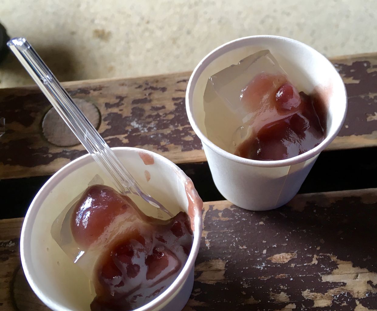 この日は何も準備できず、市販の寒天のこしあんがけ。