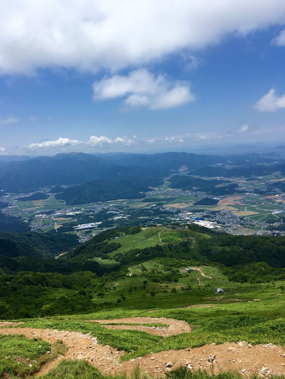 7合目を過ぎると、ややスピードが遅くなる。伊吹山は漫画のように山肌の道をくねくねと登っていく。